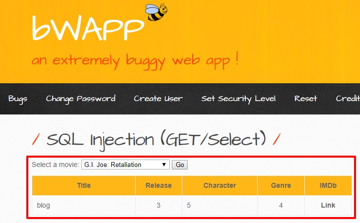 | A1-Injection SQL Injection (GET/Search) 비박스(bWAPP) (0) | 2019.12.08 |